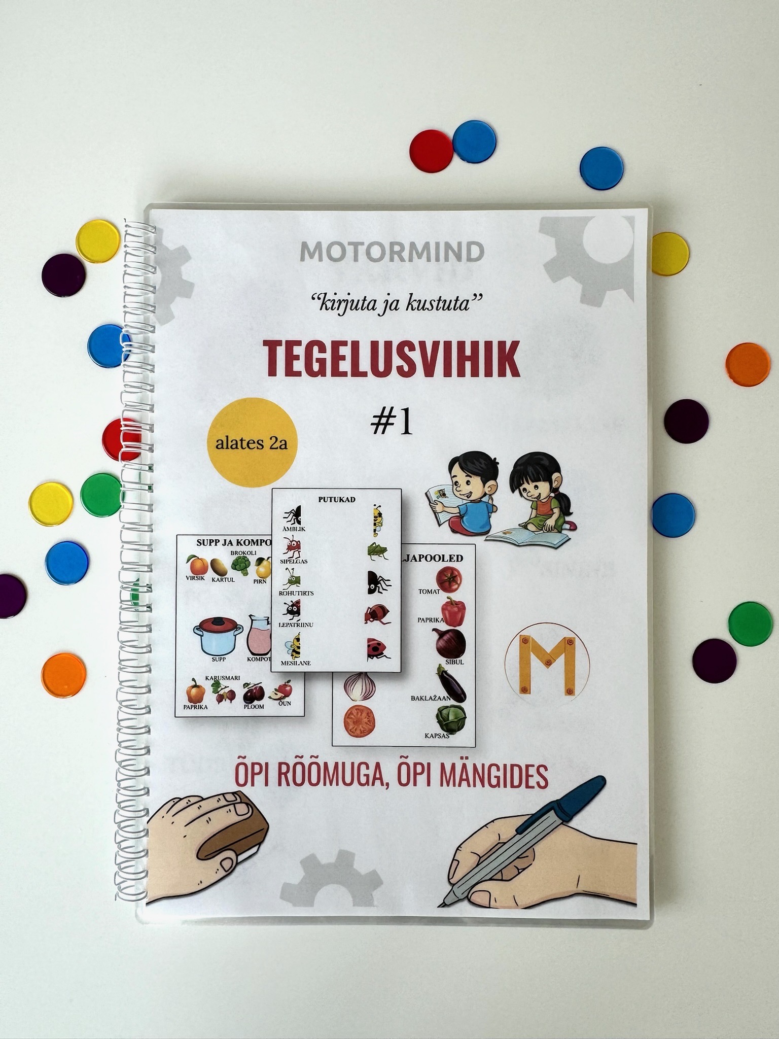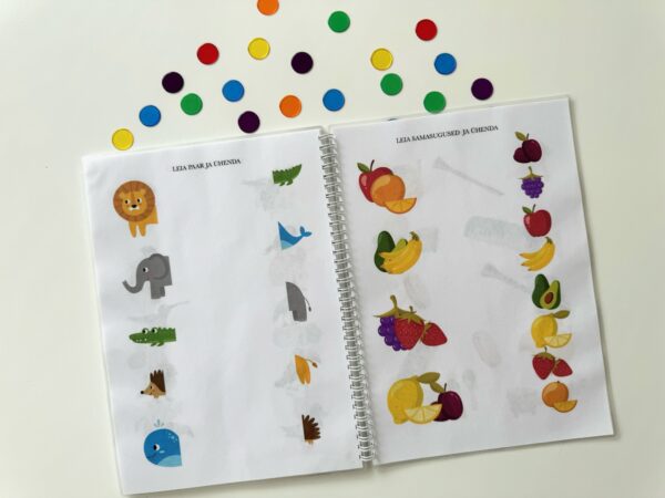 Töövihik „Tegelusvihik #1” on põnev õppevahend, mis on spetsiaalselt loodud lastele alates 2. eluaastast ja järgib lasteaia õppekava. Vihikus on 30 lehekülge, millest igaüks on pühendatud uuele teemale, alustades kõige lihtsamatest ja liikudes järk-järgult keerulisemate ülesanneteni. Ülesanded on koostatud progressiooni põhimõttel, et laps saaks areneda, omandades materjali samm-sammult.