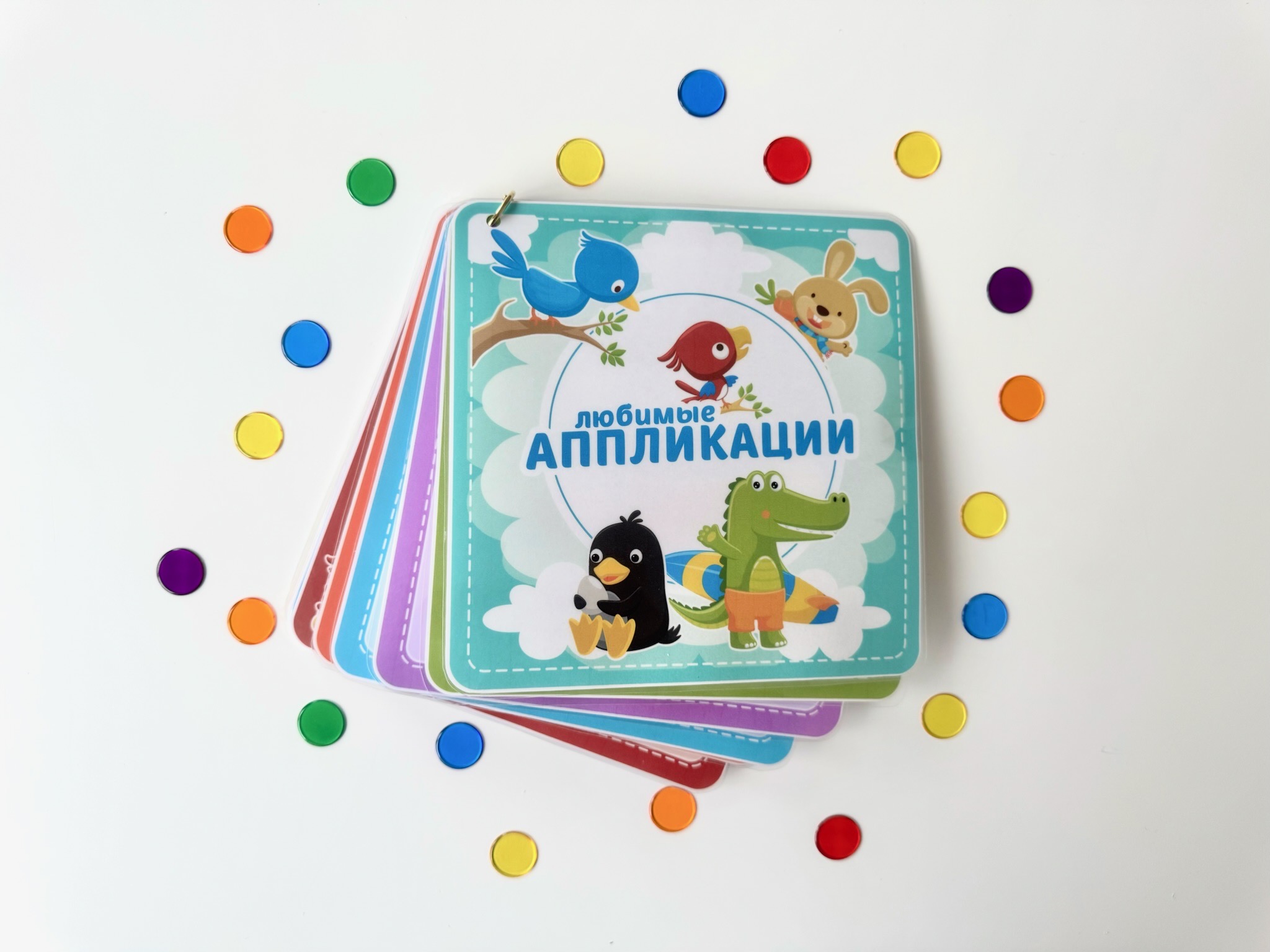 aplikatsioone armsate tegelastega. Iga lehekülg sisaldab erksaid pilte erinevate loomadega, kellele